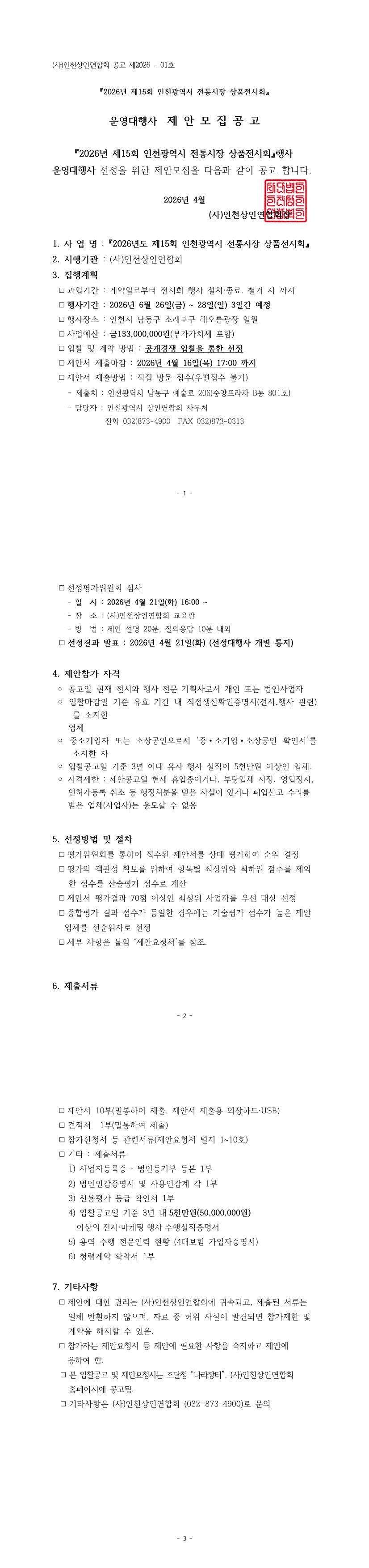 2026년 제15회 인천광역시 전통시장 상품전시회 |