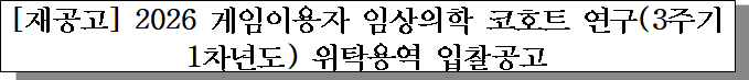 ㅇ 입찰건명 : 2026 게임이용자 임상의학 코호트 연구(3주기 1차년도)