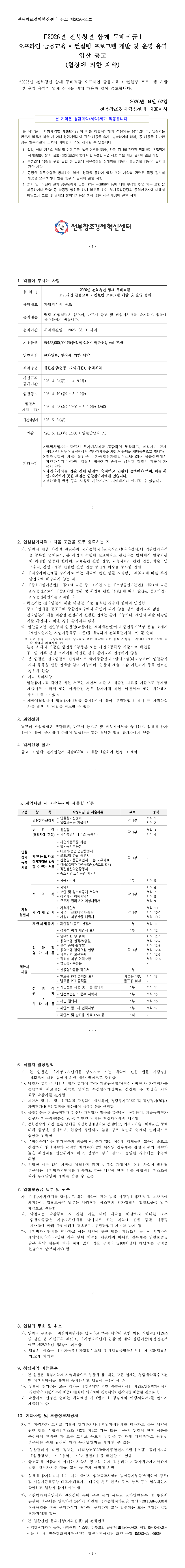 2026년 전북청년 함께 두배적금 오프라인 금융교육 ? 컨설팅 프로그램 개발 및 운영 용역 |