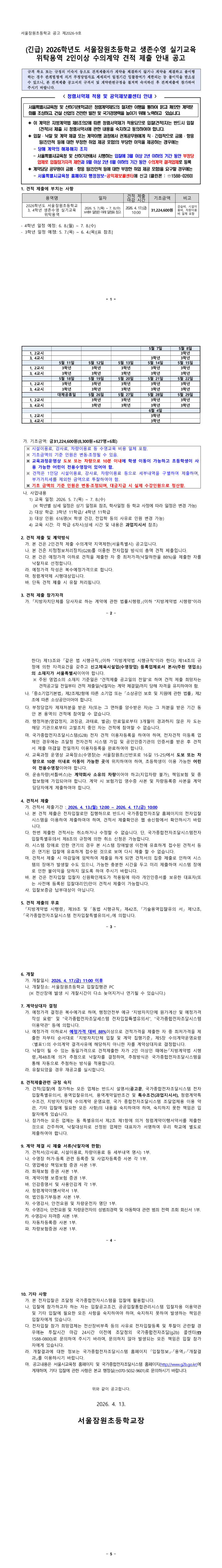 2026학년도 서울잠원초 3,4학년 생존수영 실기교육 위탁 용역 |