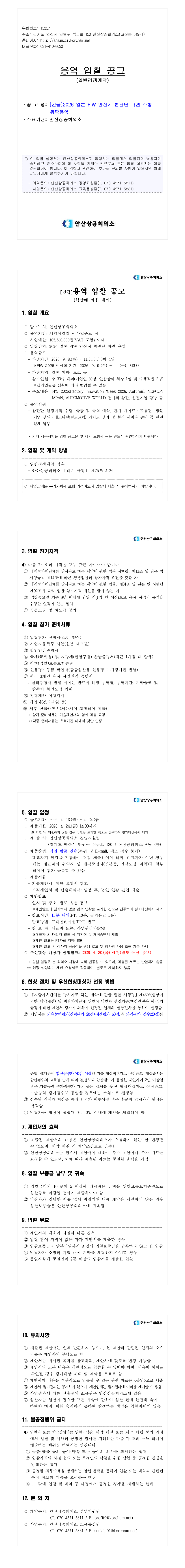 [긴급]2026 일본 FIW 안산시 참관단 파견 수행 위탁용역(협상에 의한 계약) |