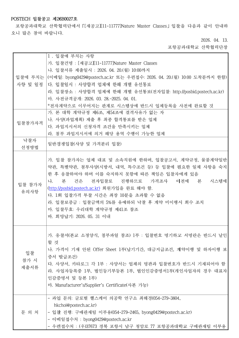 [재공고][11-11777]Nature Master Classes |