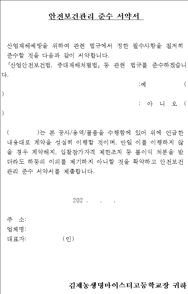 ▪ 2026학년도 김제농생명마이스터고 특수건강검진 용역