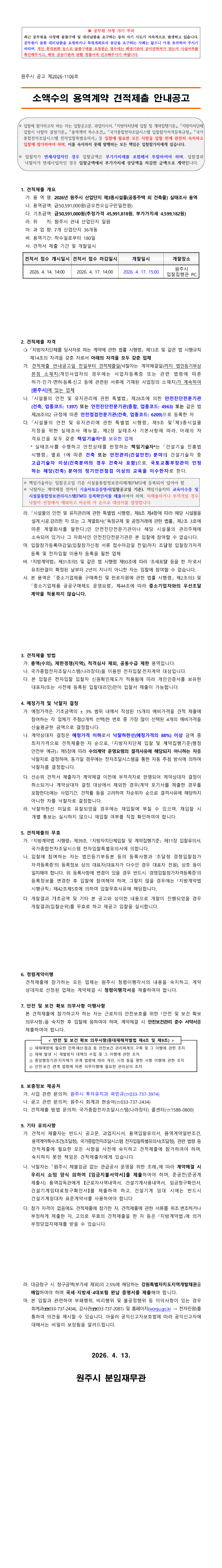 2026년 원주시 산업단지 제3종시설물(공동주택 외 건축물) 실태조사 용역 |