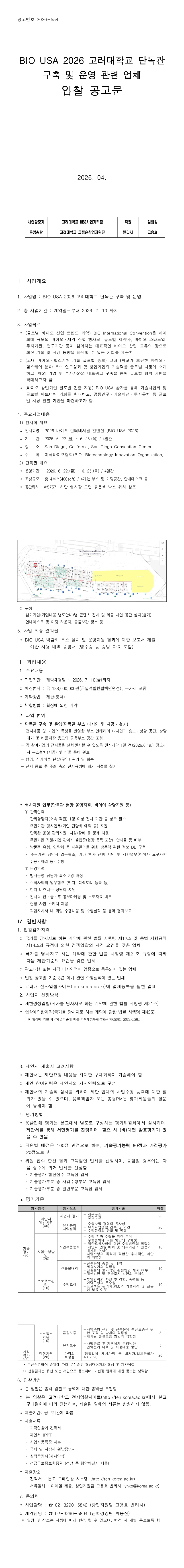 BIO USA 2026 고려대학교 단독관 구축 및 운영 |