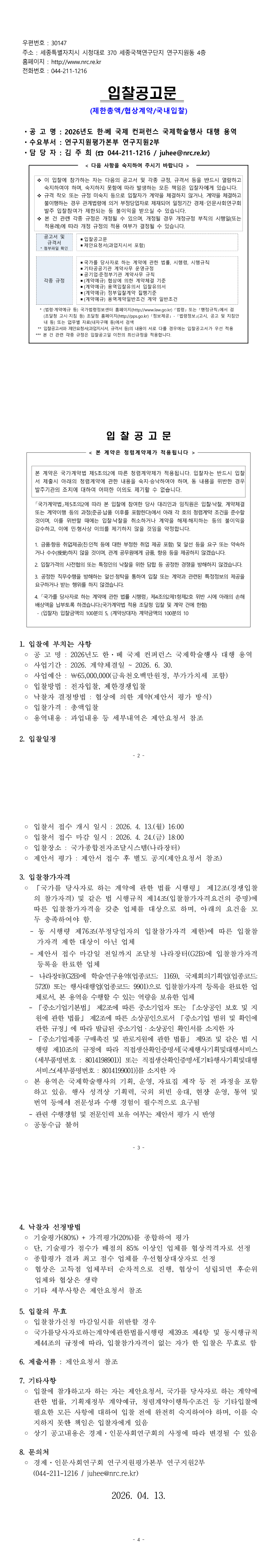 2026년도 한·베 국제 컨퍼런스 국제학술행사 대행 용역 |