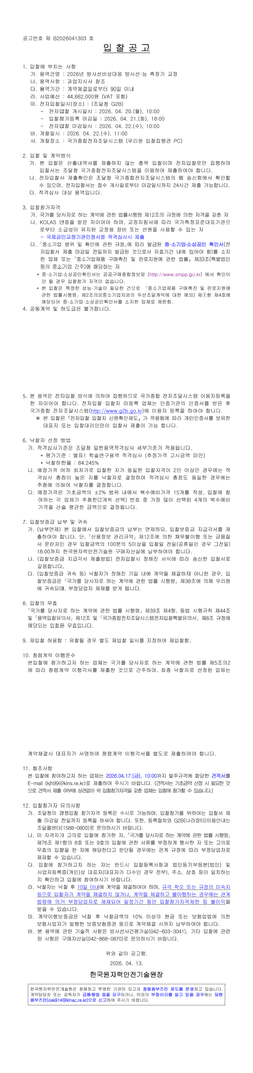 2026년 방사선비상대응방사선능 측정기 교정 |