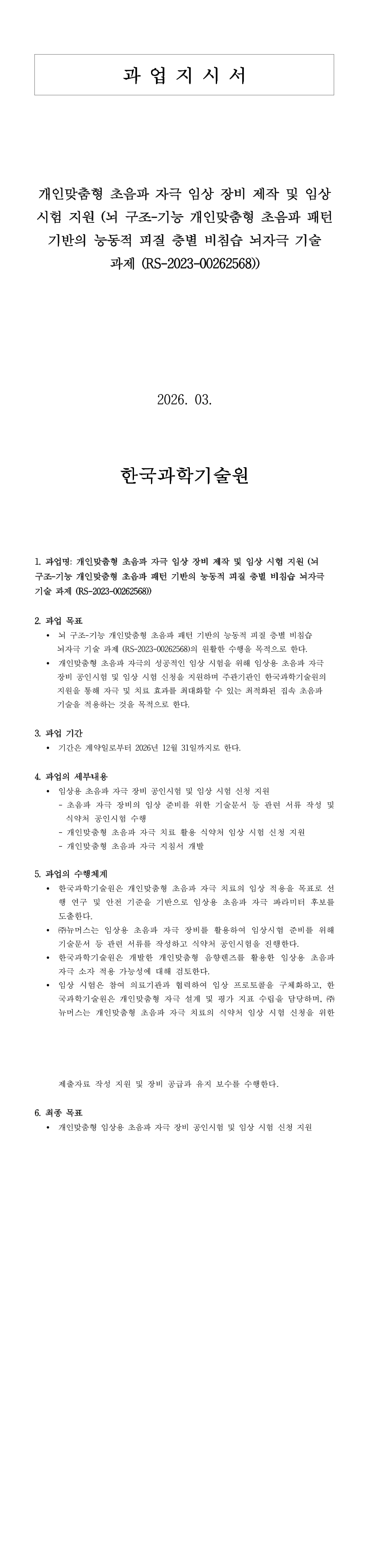 개인맞춤형 초음파 자극 임상 장비 제작 및 임상 시험 지원 |