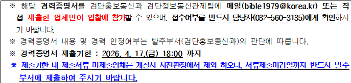 · 입찰공고일을 기준으로 투입예정인력의 지방자치단체 유지보수경력증명서 제출 가능한 업체
