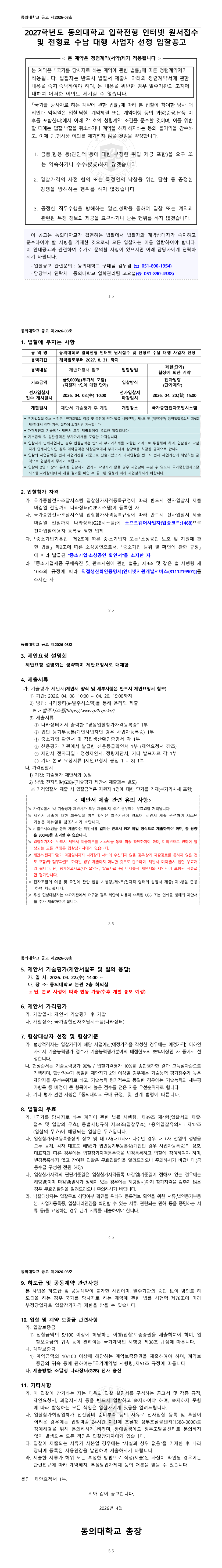 [입찰공고]제2026-03호_2027학년도 동의대학교 입학전형 인터넷 원서접수 및 전형료 수납 대행 사업자 선정 |