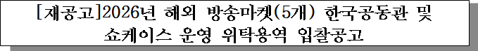 ㅇ 입찰건명 : 2026년 해외 방송마켓(5개) 한국공동관 및 쇼케이스 운영 위탁용역 입찰공고