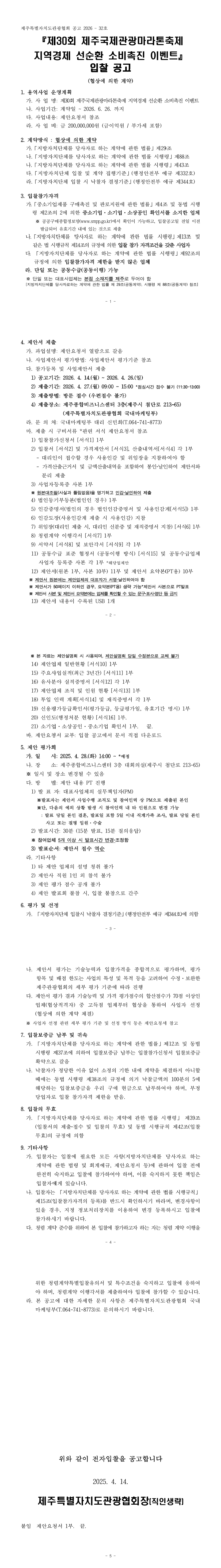 제30회 제주국제관광마라톤축제 지역경제 선순환 소비촉진 이벤트 운영 용역 |