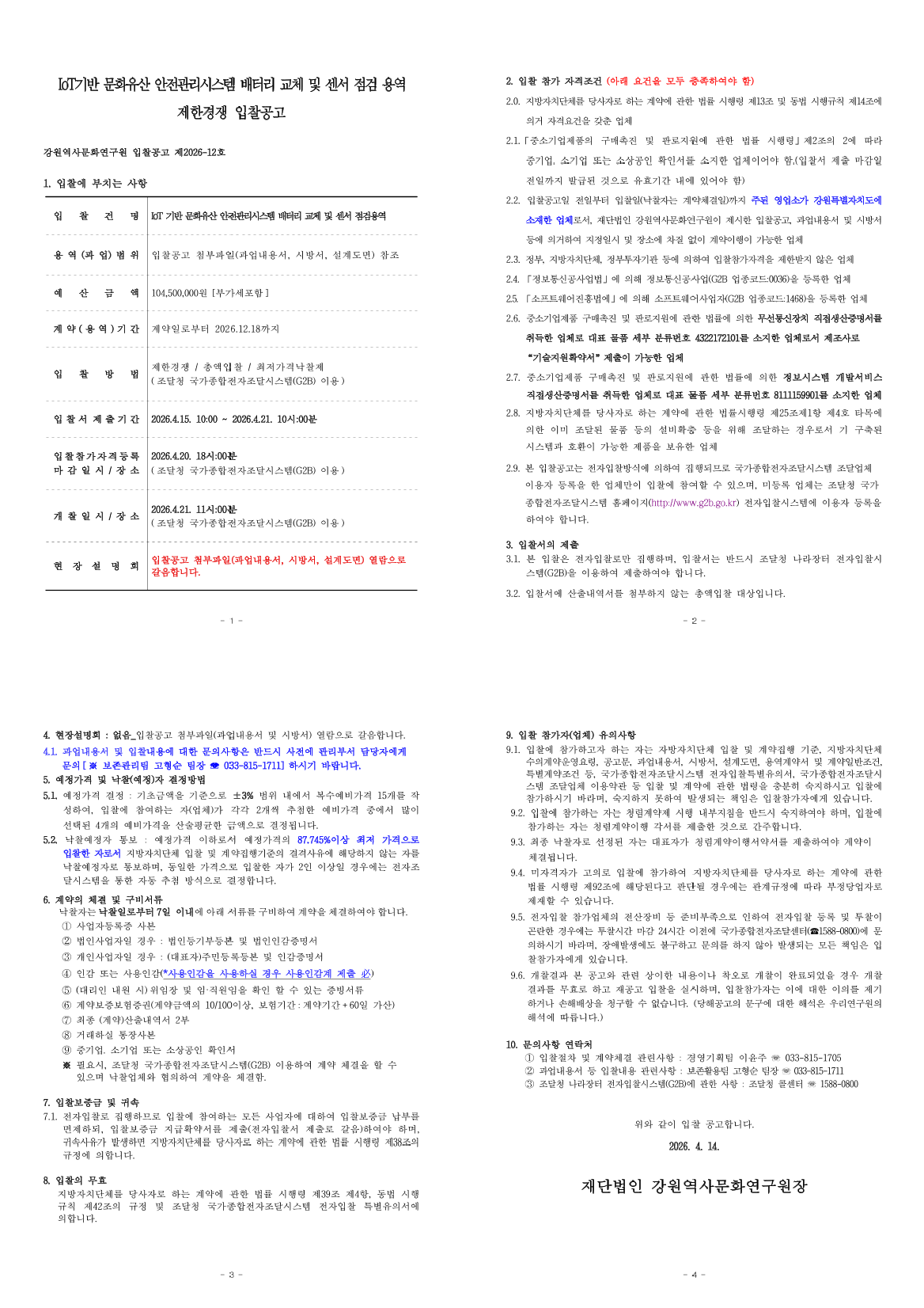 IoT 기반 문화유산 안전관리시스템 배터리 교체 및 센서 점검용역 |