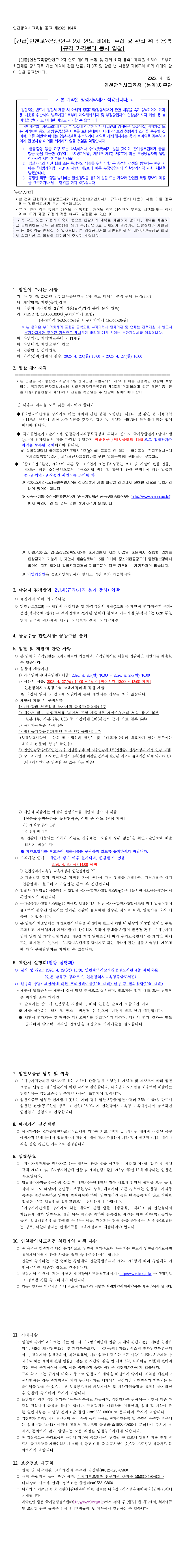 [긴급]인천교육종단연구 2차 연도 데이터 수집 및 관리 위탁 용역 |