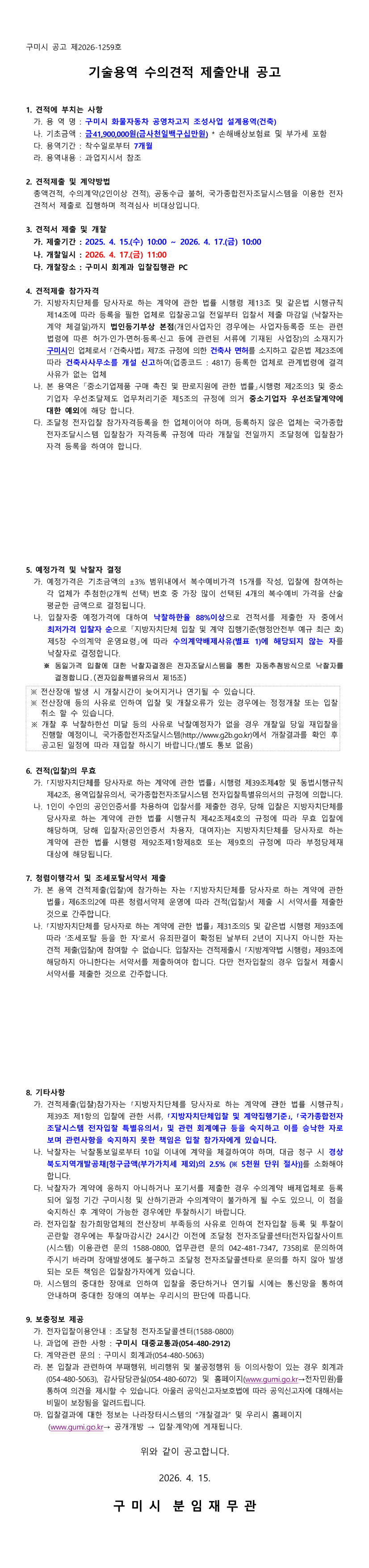 구미시 화물자동차 공영차고지 조성사업 설계용역(건축) |