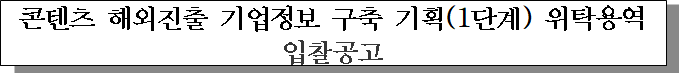 ㅇ 입찰건명 : 콘텐츠 해외진출 기업정보 구축 기획(1단계) 위탁용역