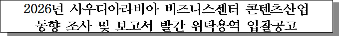ㅇ 입찰건명 : 2026년 사우디아라비아 비즈니스센터 콘텐츠산업 동향 조사 및 보고서 발간