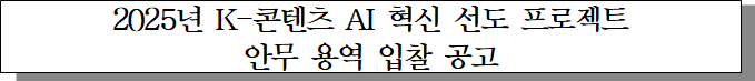 ㅇ 입찰건명 : 2025년 K-콘텐츠 AI 혁신 선도 프로젝트 안무 용역 제작사 선정