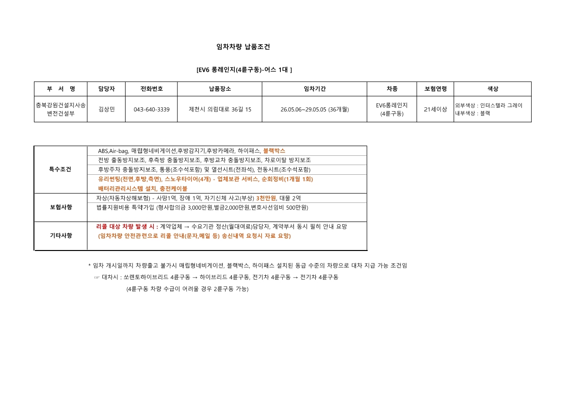 임차차량 구매(충북강원건설지사 송변전건설부, 1대) |