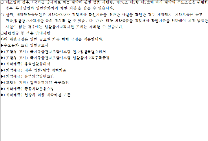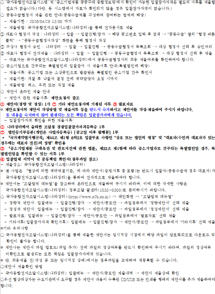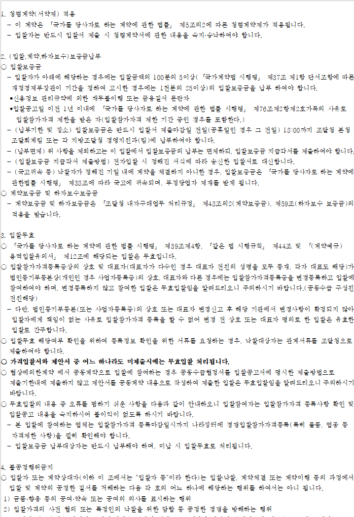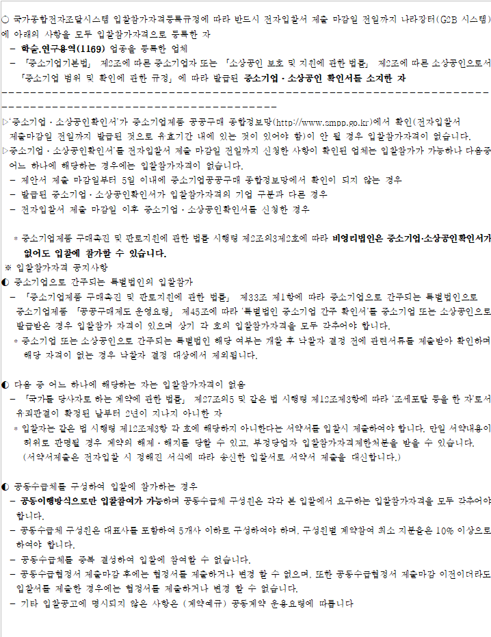 · 입찰에 참여하시기 전에반드시 공고서를 숙지하여 정확한 제한 업종을 확인하시기 바랍니다.