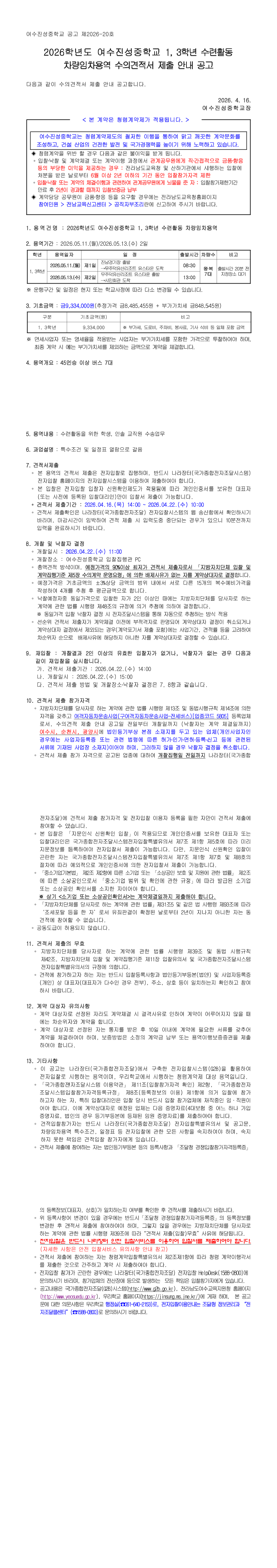 2026학년도 여수진성중학교 1, 3학년 수련활동 차량임차용역 |