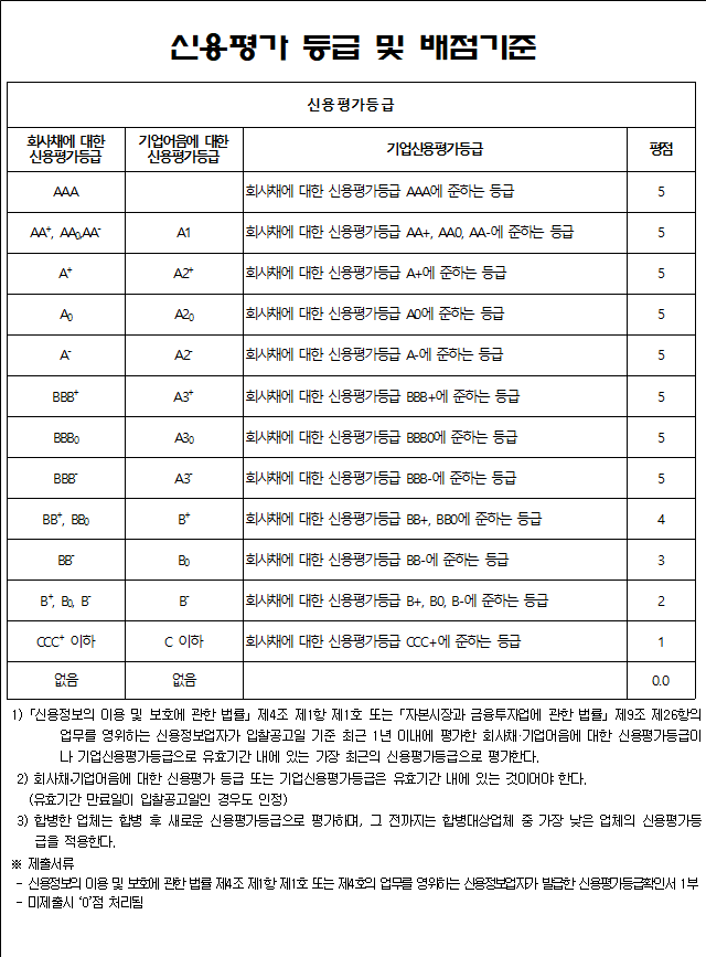 3) 신용평가 등급 확인서[불임4] 1부.