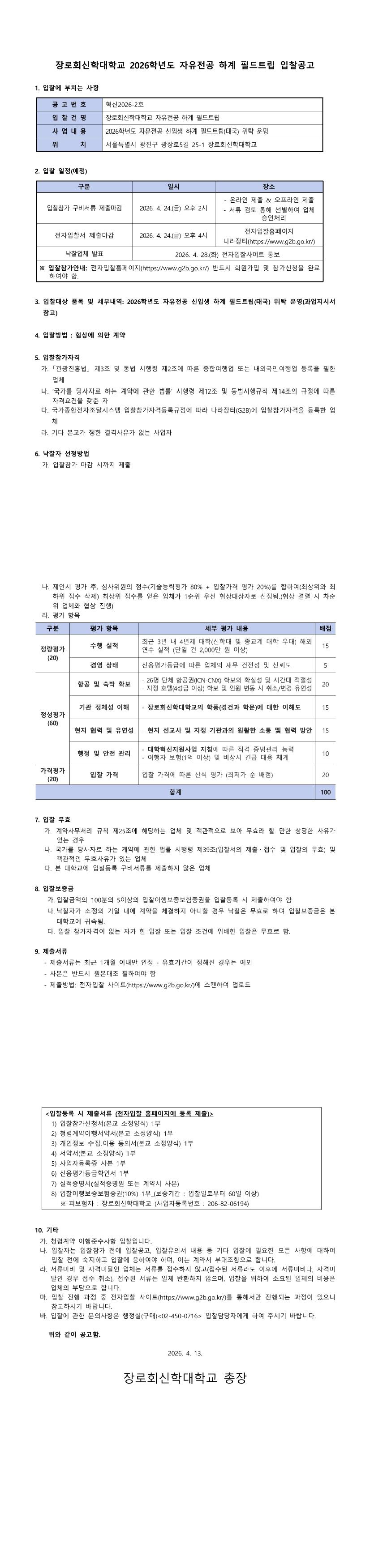 장로회신학대학교 2026학년도 자유전공 하계 필드트립 위탁 운영 |