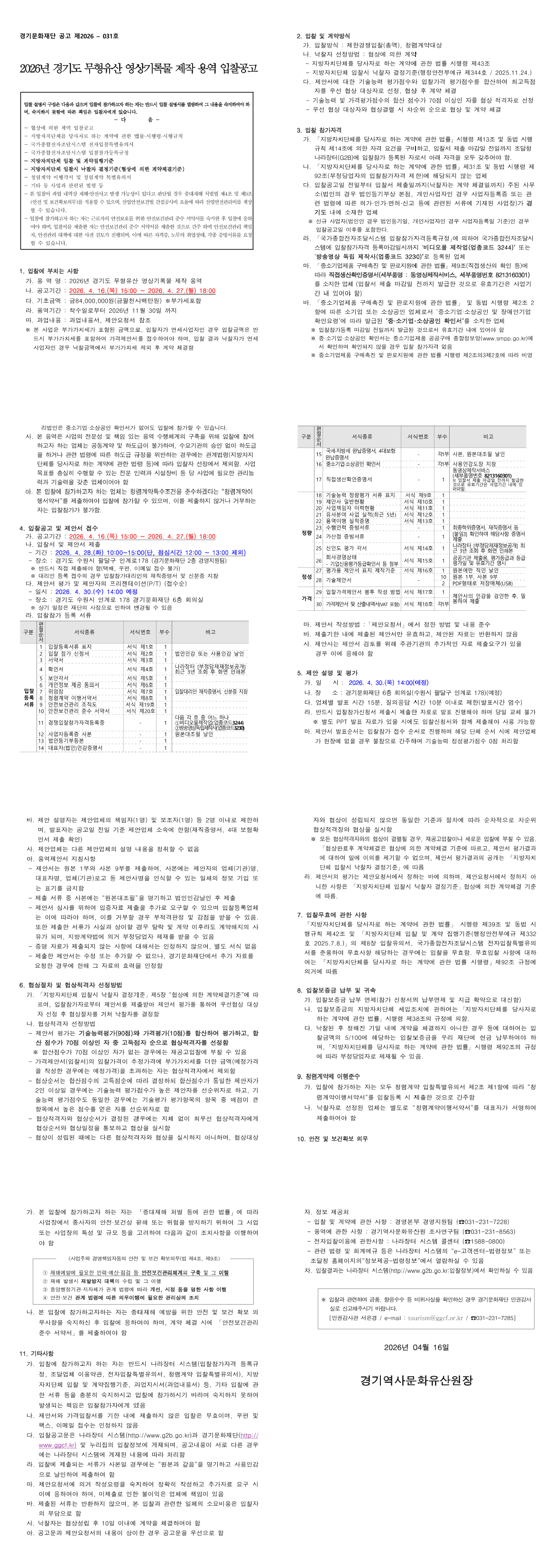 2026년 경기도 무형유산 영상기록물 제작 용역 |