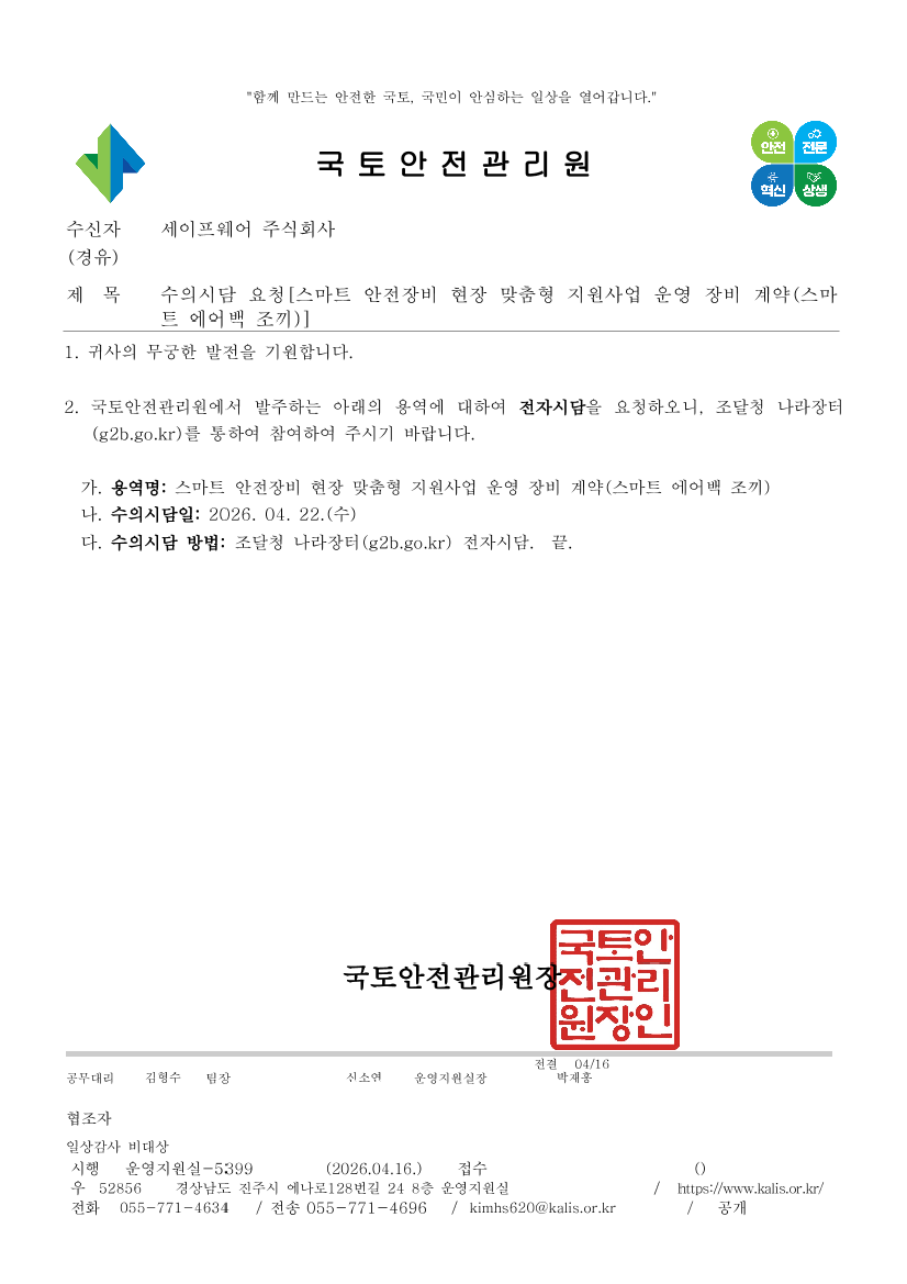 [수의시담]스마트 안전장비 현장 맞춤형 지원사업 운영 장비 계약(스마트 에어백 조끼) |