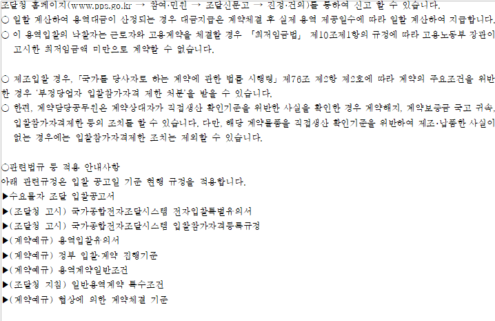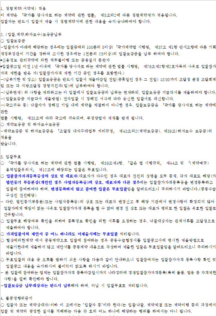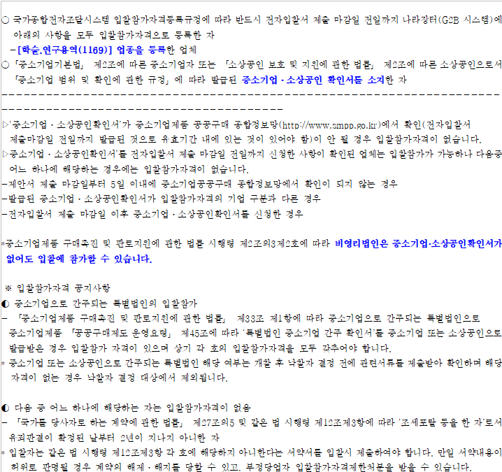 · 입찰에 참여하시기 전에반드시 공고서를 숙지하여 정확한 제한 업종을 확인하시기 바랍니다.