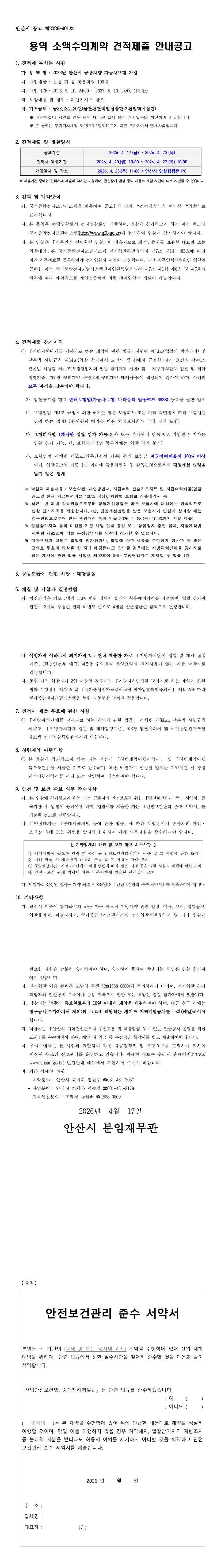 2026년 안산시 공용차량 자동차보험 가입 |