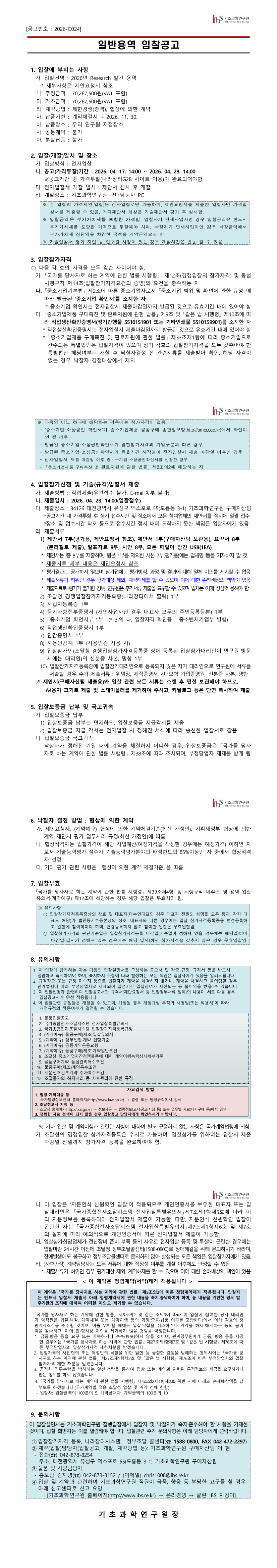 2026년 IBS Research 발간 용역 |