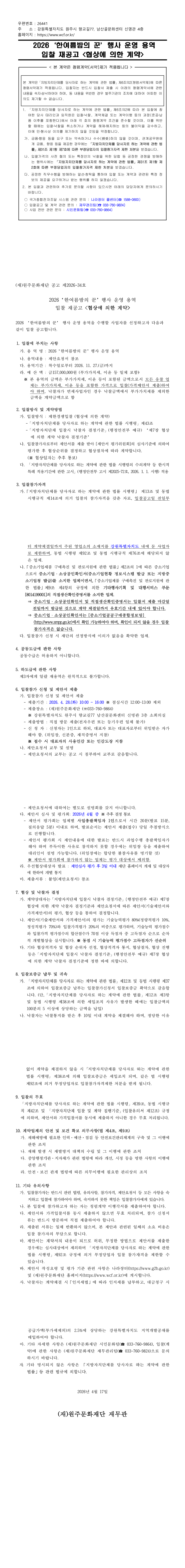 (협상에 의한 계약) 2026 한여름밤의 꾼 행사 운영 용역 |