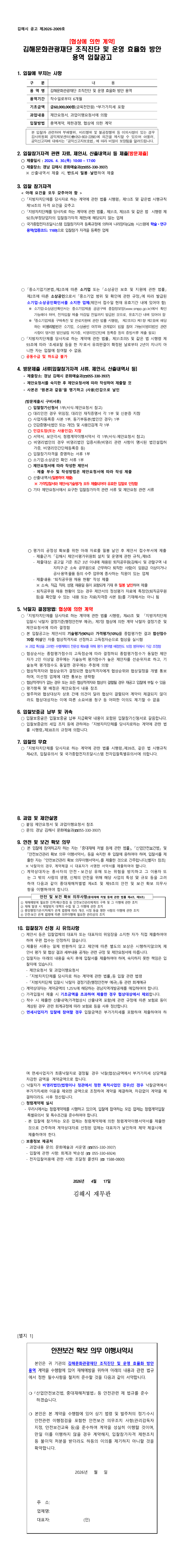 김해문화관광재단 조직진단 및 운영 효율화 방안 용역(협상에 의한 계약)_긴급 |