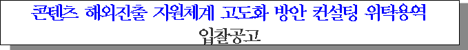 ㅇ 입찰건명 : 콘텐츠 해외진출 지원체계 고도화 방안 컨설팅 위탁용역