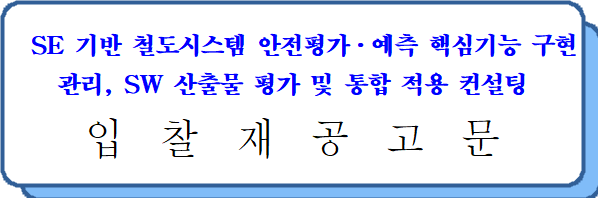 1. 입 찰 명 : SE 기반 철도시스템 안전평가·예측 핵심기능 구현 관리, SW 산출물 평가 및 통합 적용 컨설팅