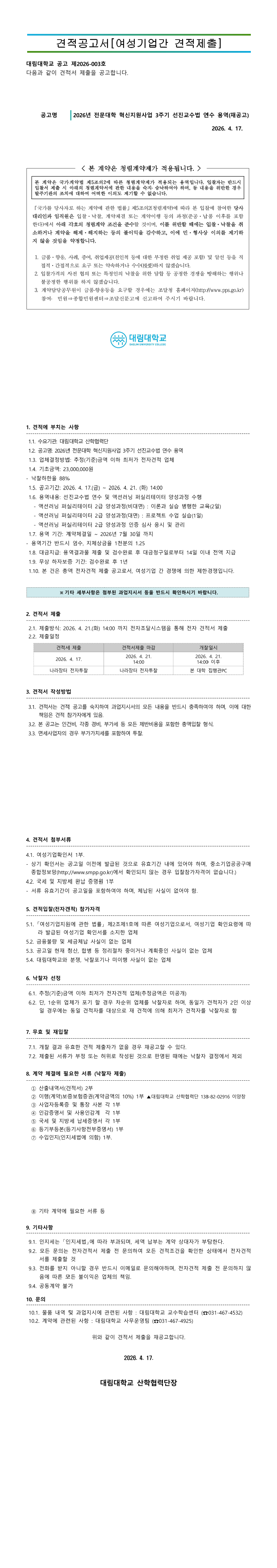 2026년 전문대학 혁신지원사업 3주기 선진교수법 연수 용역 |