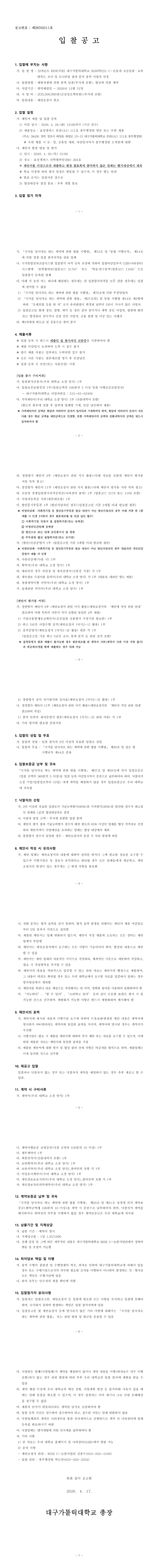 [2차년도 RISE사업] 대구가톨릭대학교 2026학년도 U-온동네 초등돌봄·교육 만족도 조사 및 모니터링 결과 분석 용역 사업자 선정 |
