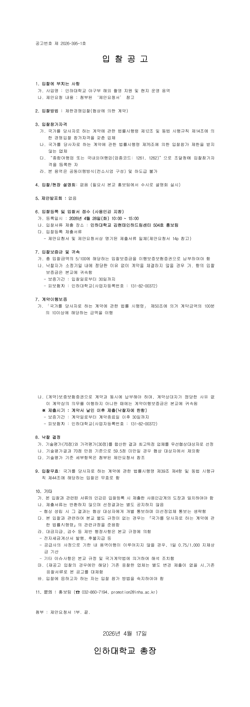 인하대학교 야구부 해외 촬영 지원 및 현지 운영 용역 |