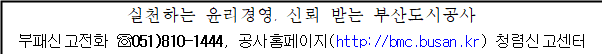 ○ 부조리신고센터(익명․실명 신고가능) : 부산도시공사 홈페이지(https://www.bmc.busan.kr)