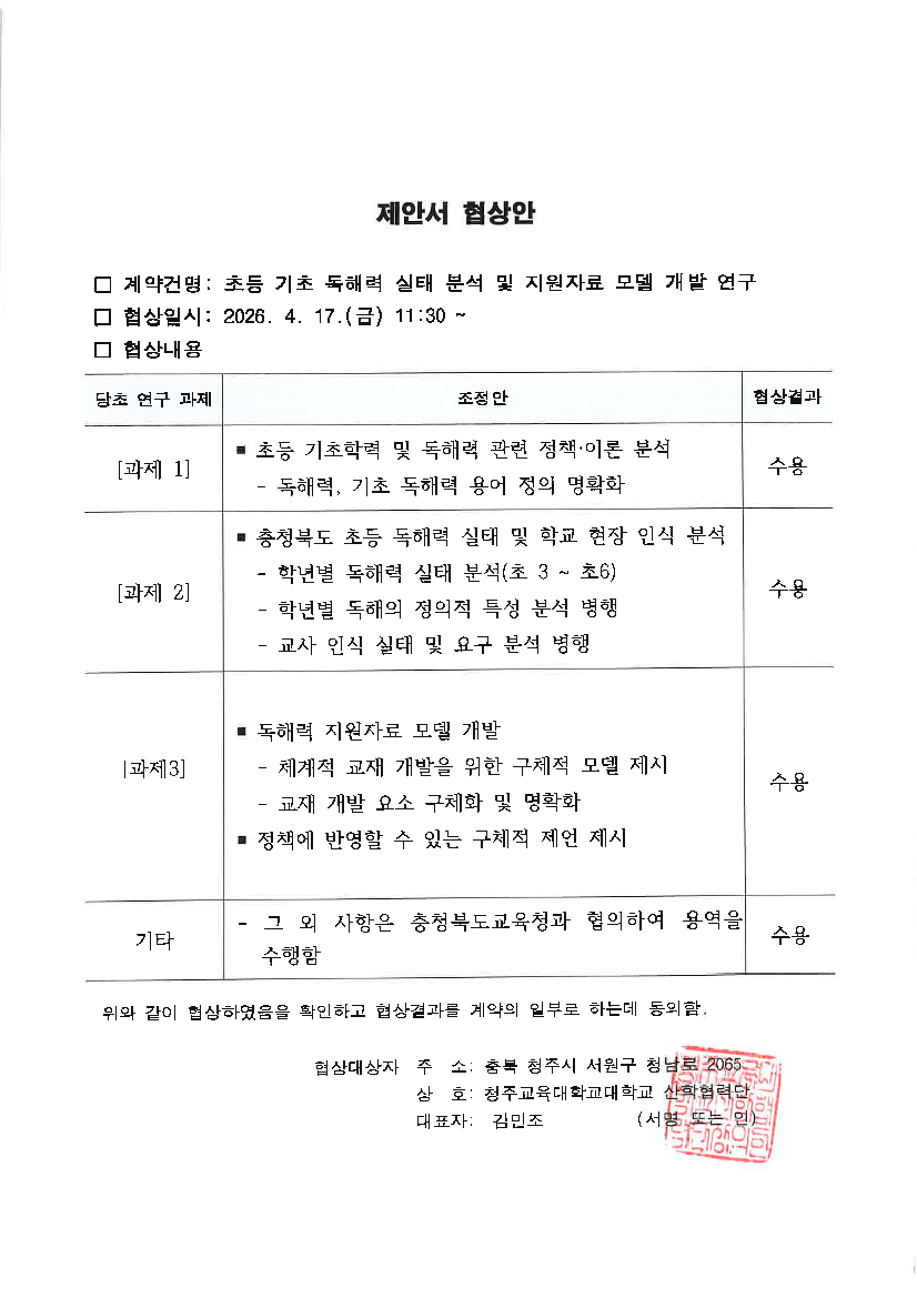 2026. 초등 기초 독해력 실태 분석 및 지원자료 모델 개발 연구용역 |
