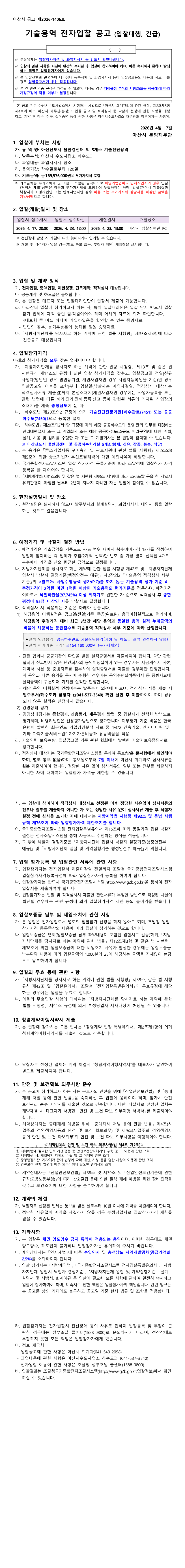 아산신도시 물환경센터 외 5개소 기술진단 용역(입찰대행, 긴급) |