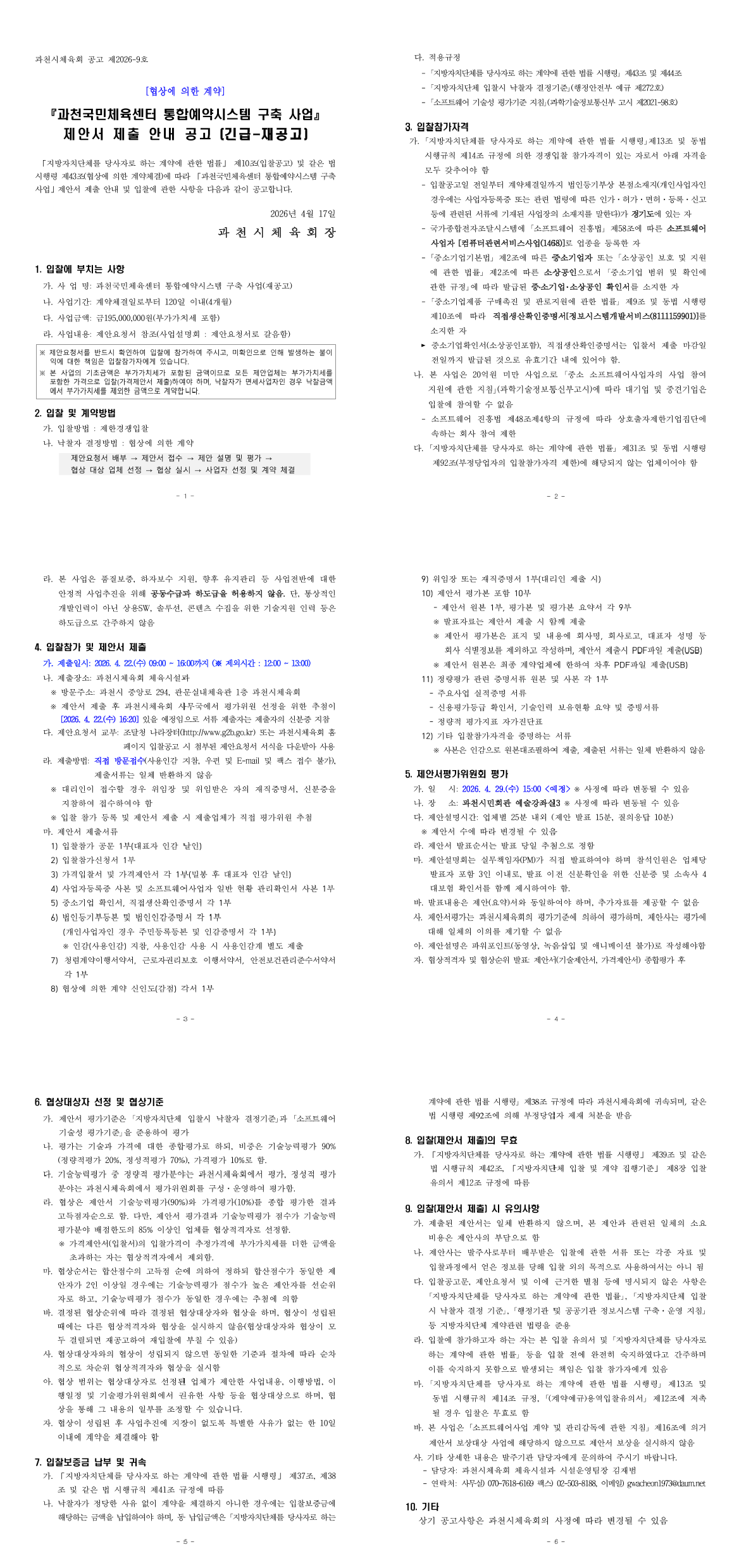 과천국민체육센터 통합예약시스템 구축(협상에 의한 계약)-재공고 |