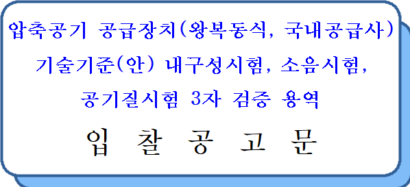 1. 입 찰 명 : 압축공기 공급장치(왕복동식, 국내공급사) 기술기준(안) 내구성시험,