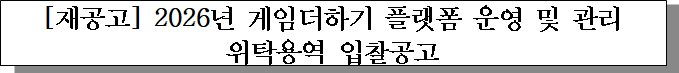 ㅇ 입찰건명 : 2026년 게임더하기 플랫폼 운영 및 관리 위탁용역
