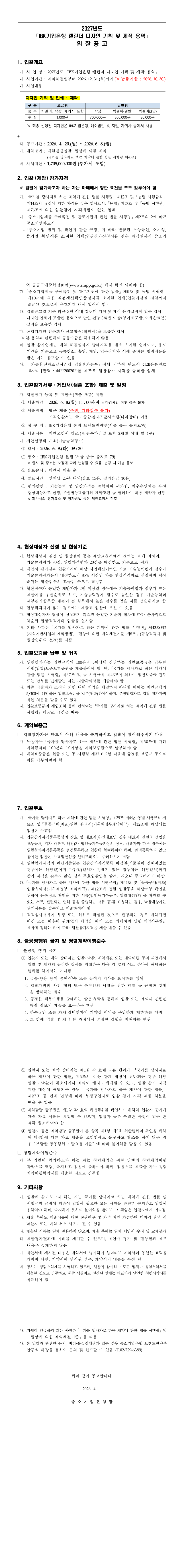 2027년도「IBK기업은행 캘린더 디자인 기획 및 제작 용역」 |