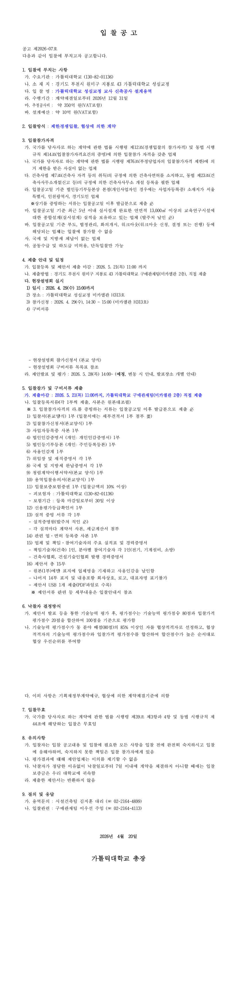 가톨릭대학교 성심교정 교사 신축공사 설계용역 |