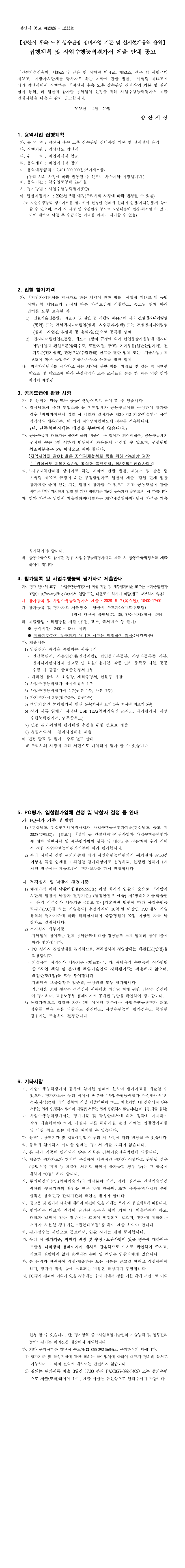양산시 후속 노후 상수관망 정비사업 기본 및 실시설계 (PQ제출) |