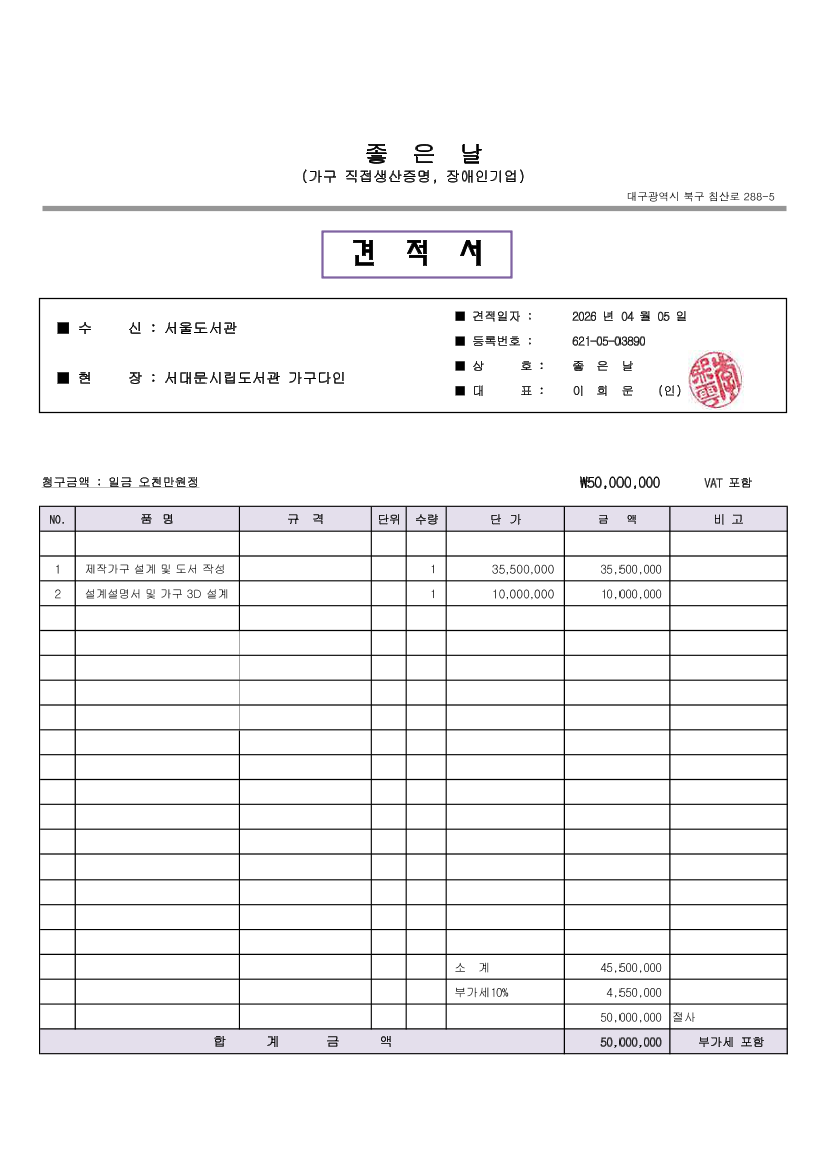 서울시립도서관(서대문구 소재)개관 추진 관련 가구디자인 용역 |
