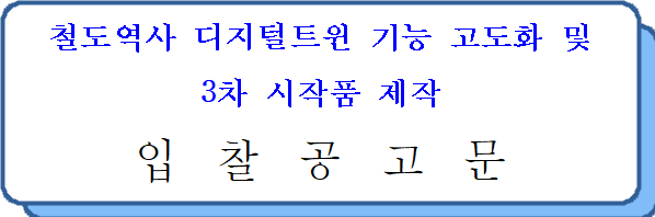 1. 입 찰 명 : 철도역사 디지털트윈 기능 고도화 및 3차 시작품 제작